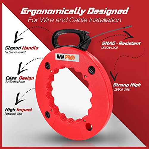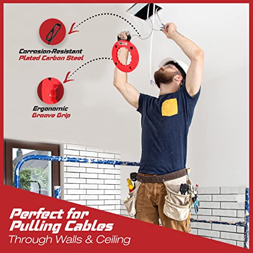 Fish Tape, Electrical Wire Puller, Wire Fishing Tools with Double Loop Tip, Flexible Steel Fish Tape, Durable Housing 1…