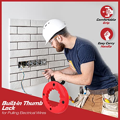 Get a Grip! Improved Comfort Grip Handle and built-in Thumb Lock on our 1/8” x 100-foot fish tape makes pulling electrical or communication wires easy without getting tangled up!