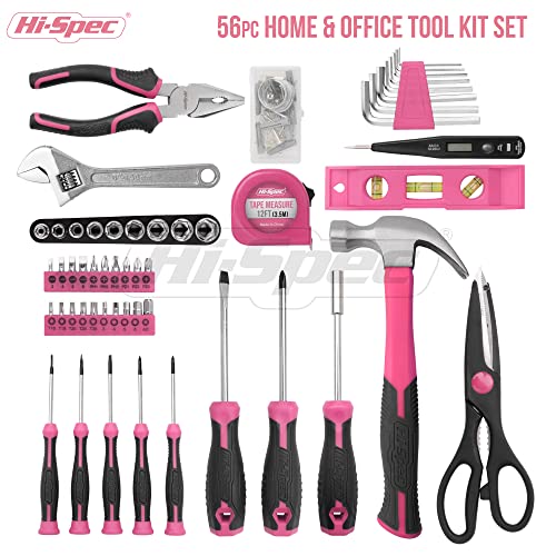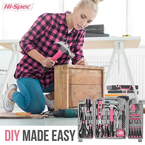 Specification: Hi-Spec 54pc Pink Home DIY Tool Kit for Women, Office & Garage. Complete Ladies Basic House Tool Box Set